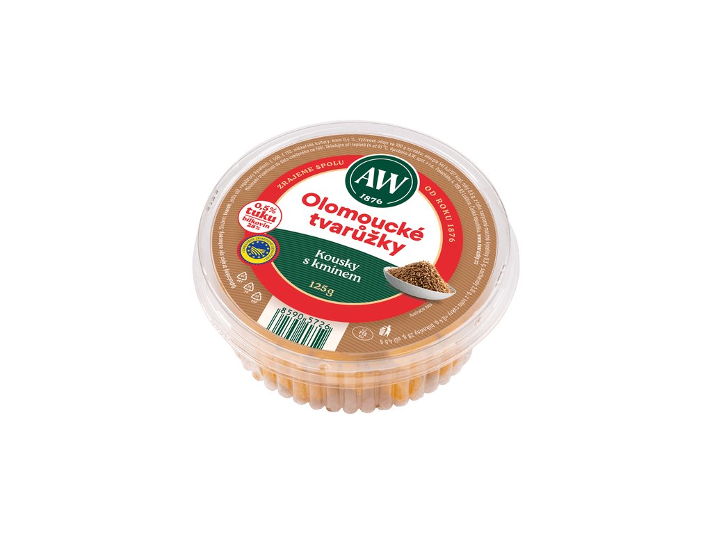Oblíbený produkt z kategorie: . A.W. Olomoucké tvarůžky s kmínem chlaz. 6 x 125 g máme běžně skladem.
