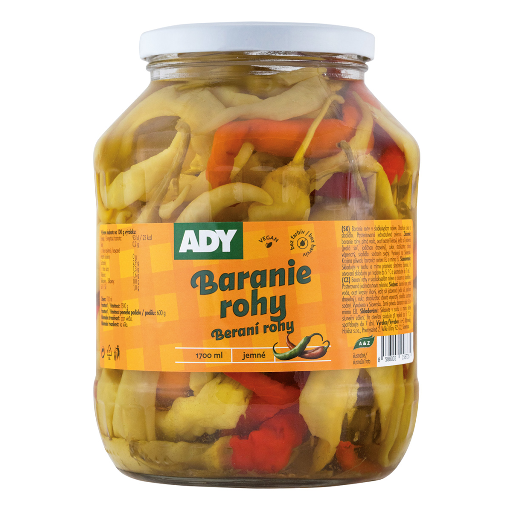 Oblíbený produkt z kategorie: . ADY Feferony beraní rohy 1,5 kg máme běžně skladem.
