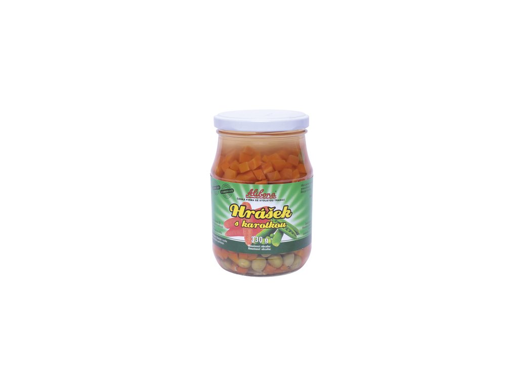 - Karotka, hrášek, pitná voda, sůl jedlá