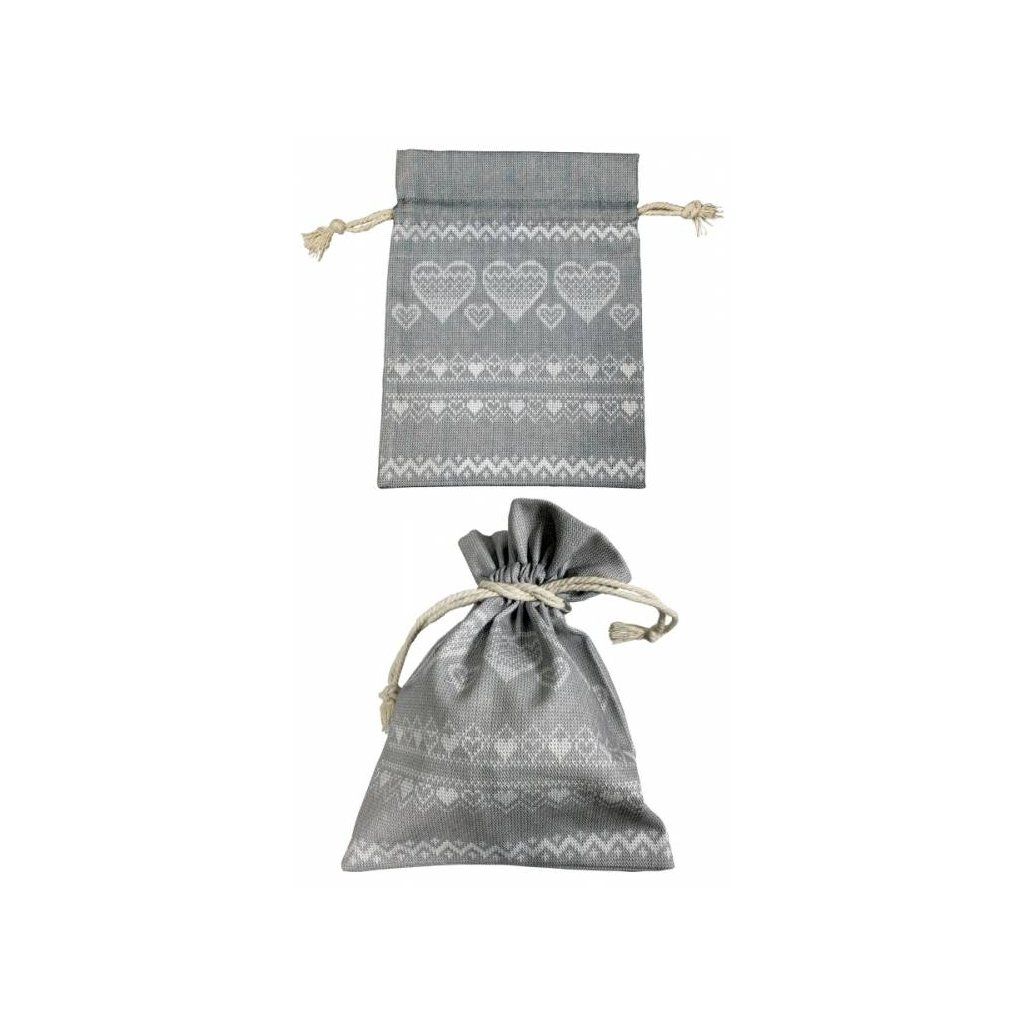 Alvarak bavlněný sáček se šňůrkou Šedý se srdíčky ▹