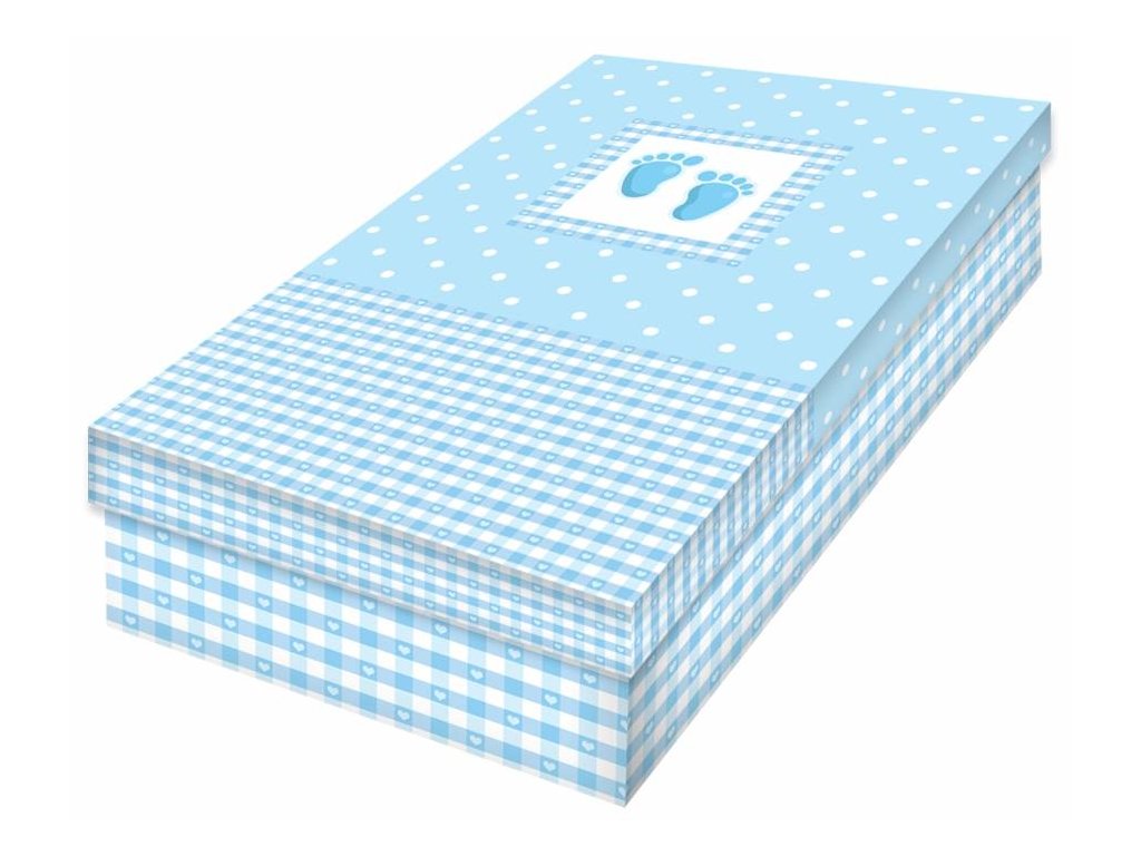 Alvarak dárková krabička modrá s dětskými stopami (24 x 16 x 6,5 cm) ▹