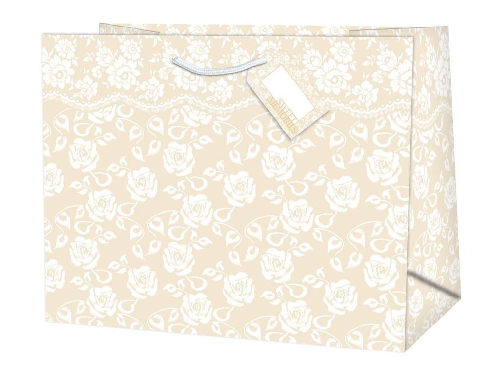 Alvarak Dárková taška střední Krémová s bílými růžemi ▹