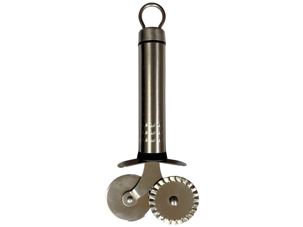 Rádélko je vyrobeno z vysoce kvalitní nerezové oceli. Jedno ostří je hladké a druhé vlnité. Rádélko najde využití při výrobě těstovin, pečiva nebo sušek. Vytvoříte s jeho pomocí efektní mřížkování a ozdobné řezy. Délka: 17,5 cm Průměr: 3,8 cmDoplňkové parametry