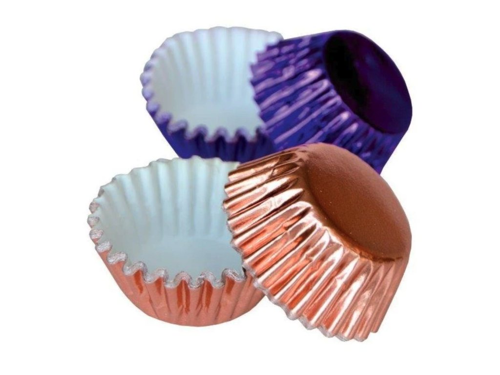 Hliníkové košičky na pralinky, ideální na přípravu čokoládových pralinek a vhodné pro styk s potravinami. Průměr dna: 2,5 cm Výška: 1,7 cm 50 kusů v balení (25 ks fialových a 25 ks růžových).Doplňkové parametry