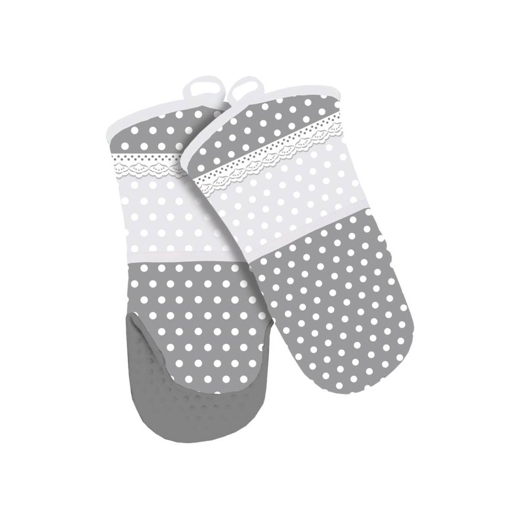 Alvarak kuchyňská chňapka šedá se silikonovou dlaní Puntíky ▹