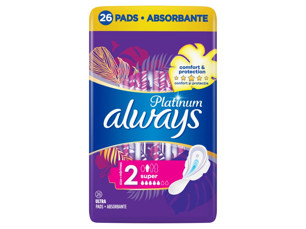 always Ultra Platinum Super (Velikost 2) Dámské vložky dlouhé s křidélky 26 ks