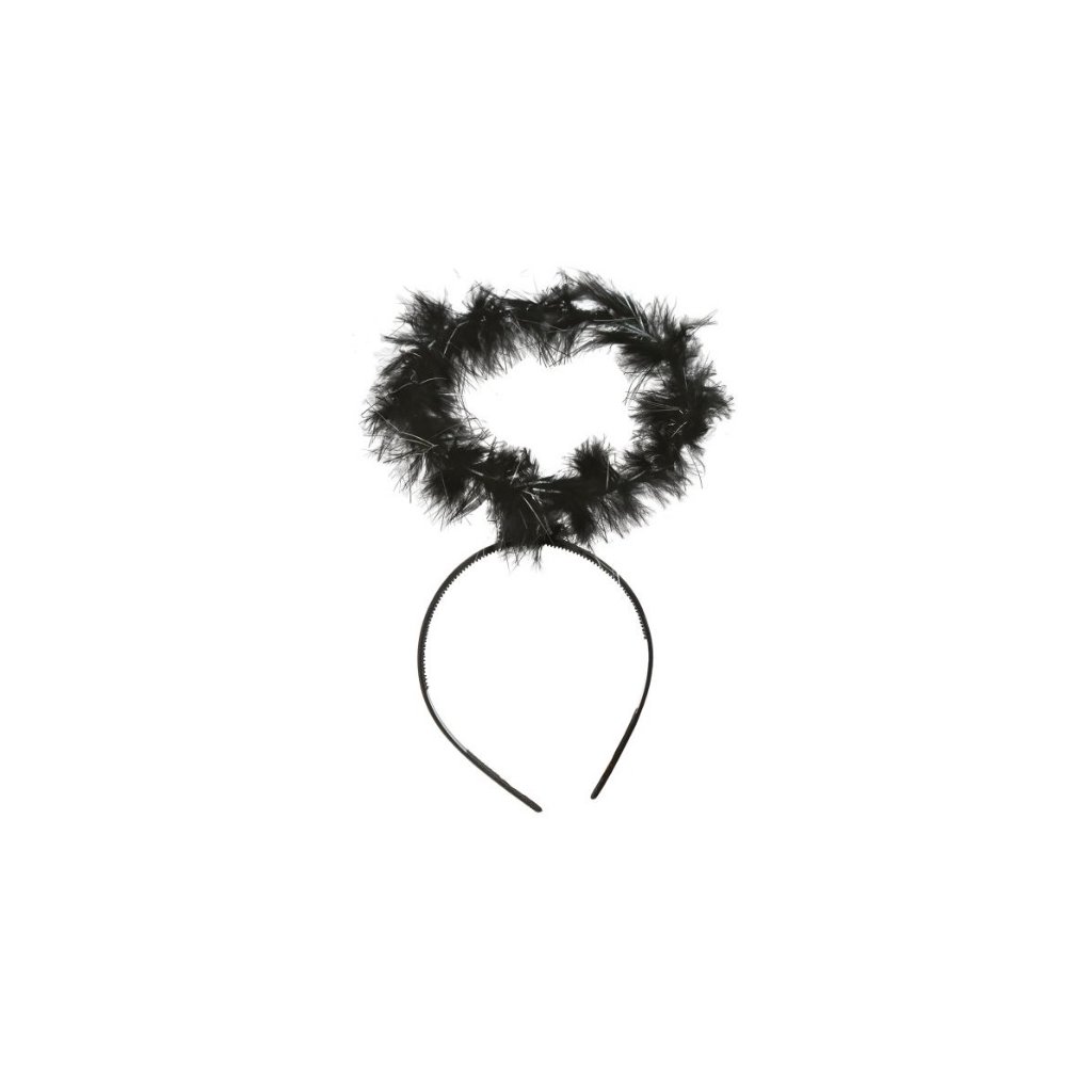 Andělská svatozář - černá. Proměňte se ve zlobivého anděla pomocí černé svatozáře na čelence, jednoduše jí schováte do vlasů nebo paruky. Vhodná na jakoukoliv tematickou party. Hodí se jako doplněk ke kostýmu ale i na halloweenskou party nebo karneval. Velikost: 17 x 30 x 11 cm Balení: 1 ksDoplňkové parametry