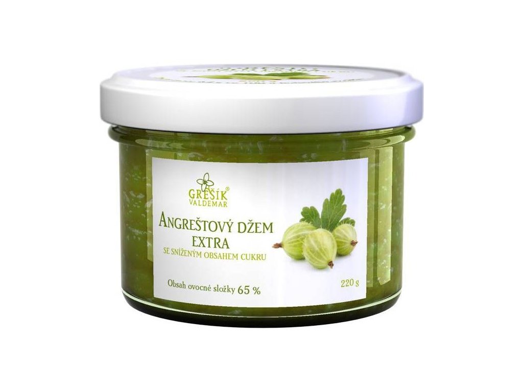 Džem z angreštu extra se sníženým obsahem cukru Grešík. Balení 220 g.Doplňkové parametry