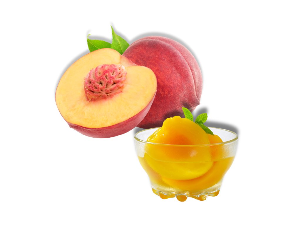 - Broskve loupané půlené, pitná voda, cukr, regulátor kyselosti:kyselina citronová.