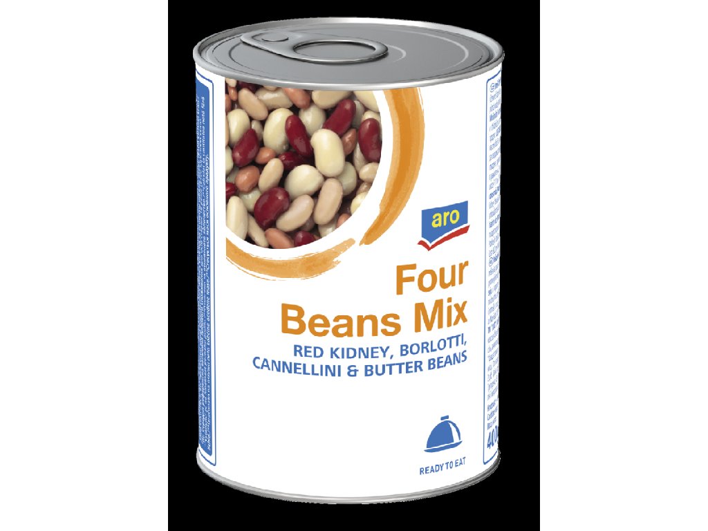 - Směs čtyř fazolí ve slaném nálevu. Sterilovaný výrobek.