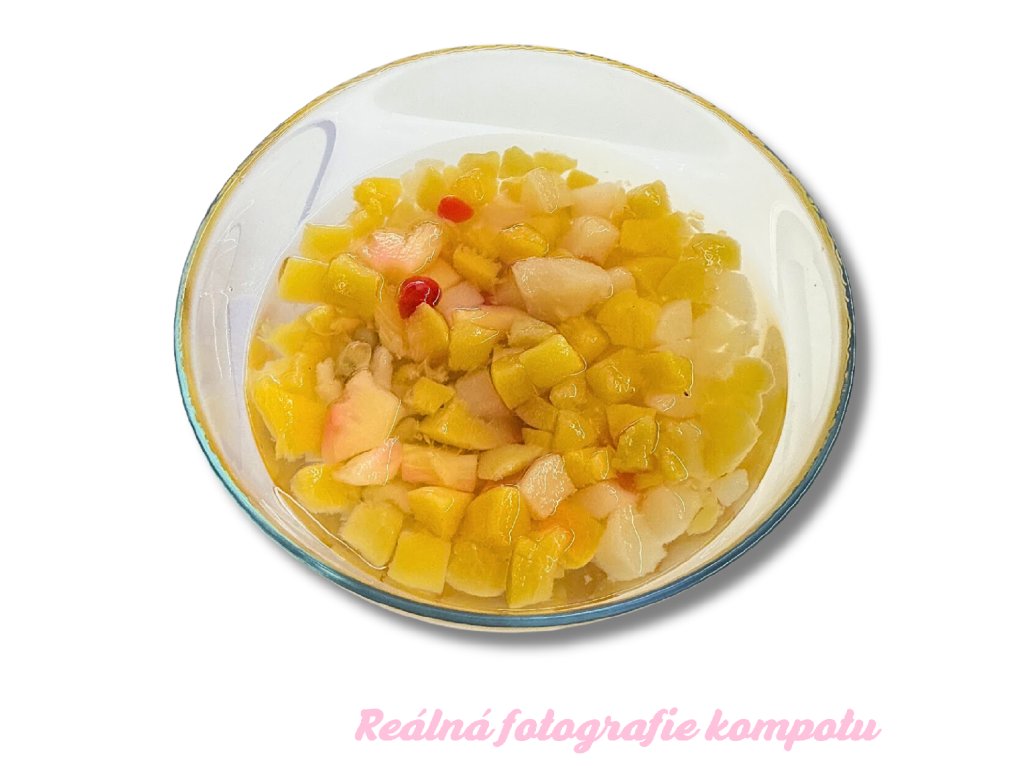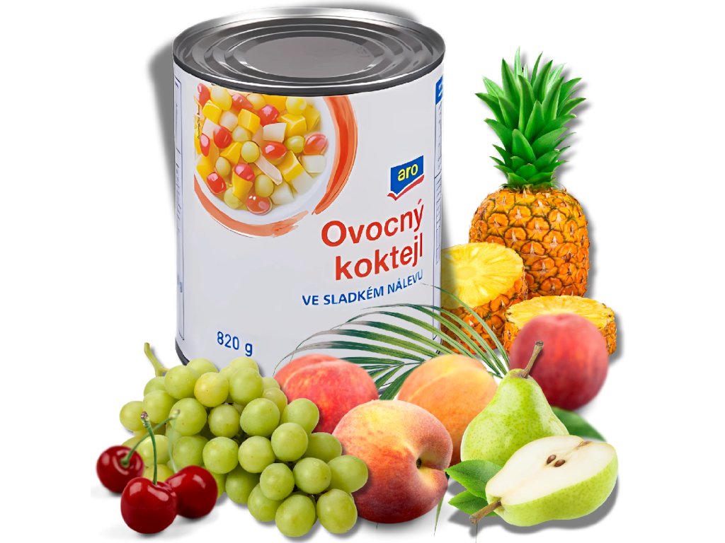 - Ovocný koktejl ve sladkém nálevu. Konzervované pasterované ovoce.