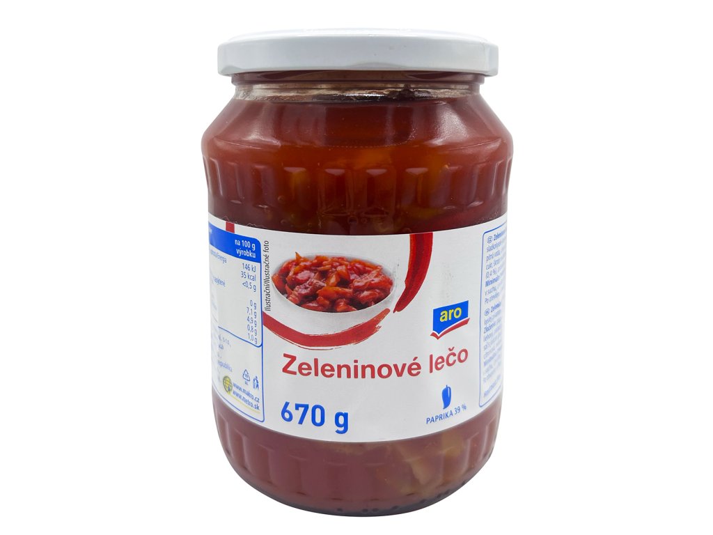 - Zeleninové lečo 670g. Pasterovaná zelenina dělená vícedruhová ve sladkokyselé kořeněné rajčatové omáčce.