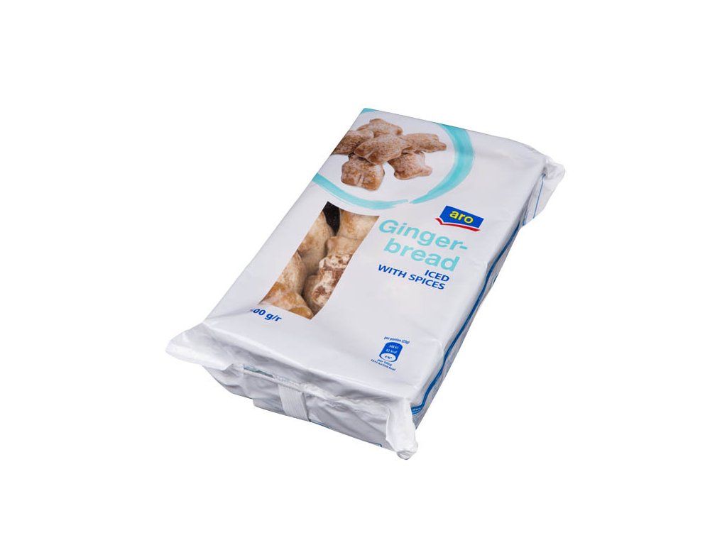 - pšeničná mouka, glukózo-fruktózový sirup, poleva 23%(cukr, pitná voda, bramborový škrob), cukr, med 2%, kypřící látky:uhličitany amonné, uhličitany sodné; směs koření (kakaový prášek,pšeničná mouka, skořice, koriandr, zázvor, hřebíček, chilli), barvivo:amoniakový karamel; slunečnicový olej, jedlá sůl. Může obsahovatvejce, arašídy, sóju, sezamová semínka a skořápkové plody.