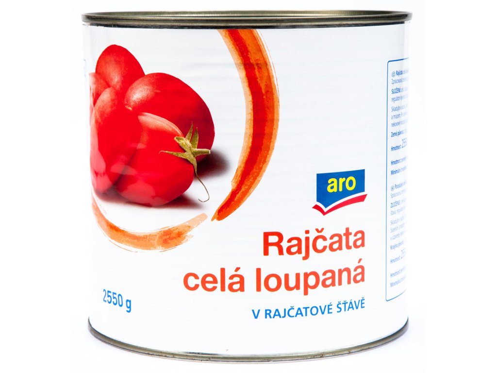 Nakupovat potraviny, drogerii a další potřeby pro domácnost online se vyplatí. Náš online supermarket Terunka.cz, toho má v kategorii: mnohem více. Prohlédněte si celou naší nabídku a ušetřete svůj čas i peníze.aro Rajčata celá loupaná v rajčatové šťávě 2550 g za skvělou cenu, máme skladem.