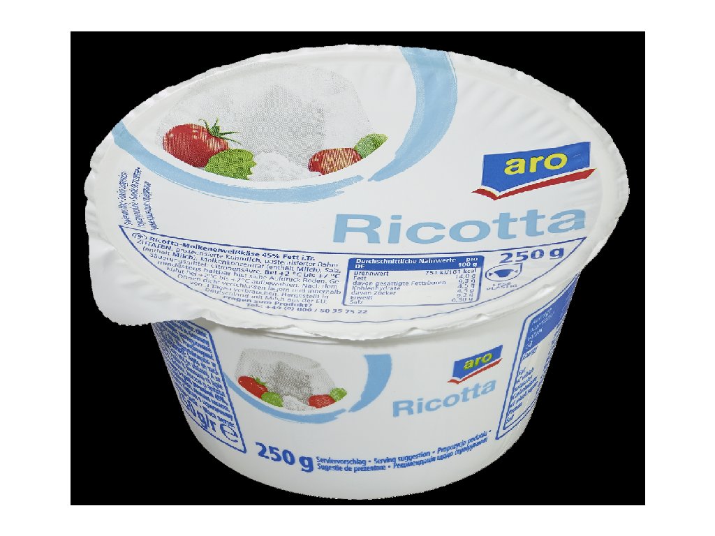 Nakupovat potraviny, drogerii a další potřeby pro domácnost online se vyplatí. Náš online supermarket Terunka.cz, toho má v kategorii: mnohem více. Prohlédněte si celou naší nabídku a ušetřete svůj čas i peníze.aro Ricotta 45 % sýr chlaz. 250 g za skvělou cenu, máme skladem.