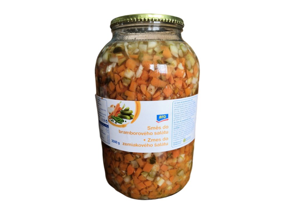 - ARO Směs do bramborového salátu. Zpracovaná zelenina vícedruhová sterilovaná ve sladkokyselém nálevu se sladidlem.