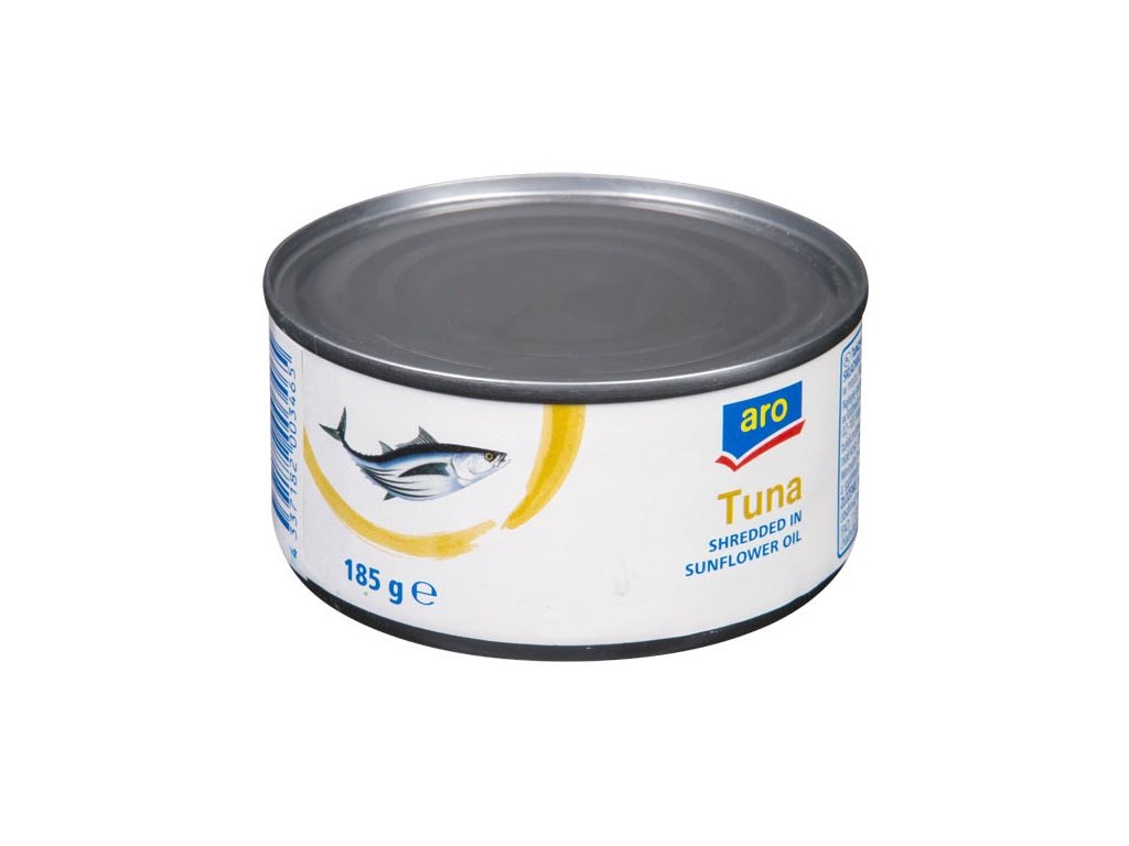 - Tuňák drcený v rostlinném oleji, rybí konzerva, sterilováno.
