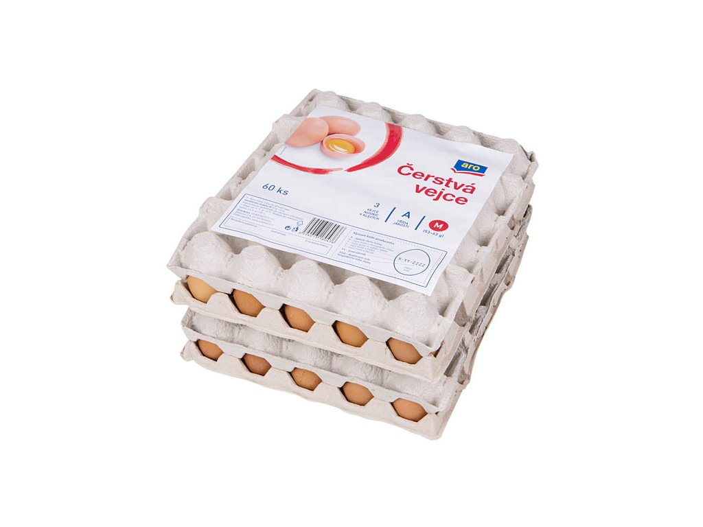 - Vejce nosnic v klecích, 60 kusů tříděných vajec, Jakostní třída: A,
