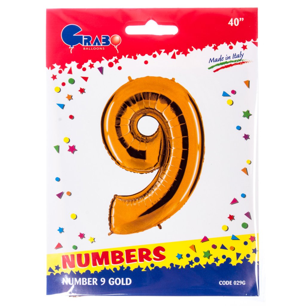 Balónek fóliová číslice "9" zlatá 102cm 1 ks