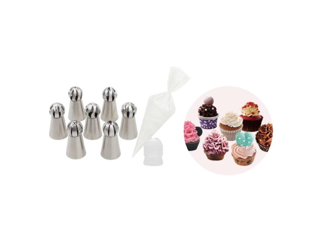 Cukrářské potřeby a suroviny pro sladké pečení.Produkt pro domácí cukráře: Balonové zdobící špičky 7ks a sáčky - Cakesicq ,