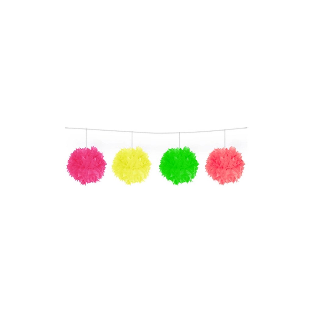 Krásná, pestrobarevná a efektivní girlanda z Pom Pomů o délce 3 metry. Girlandu můžete využít na narozeninových oslavách, tematických party nebo i karnevalu. Pom Pomy jsou vyrobeny z hedvábného papíru v neonových barvách. Délka: 300 cmBalení: 1 ksMateriál: papírDoplňkové parametry