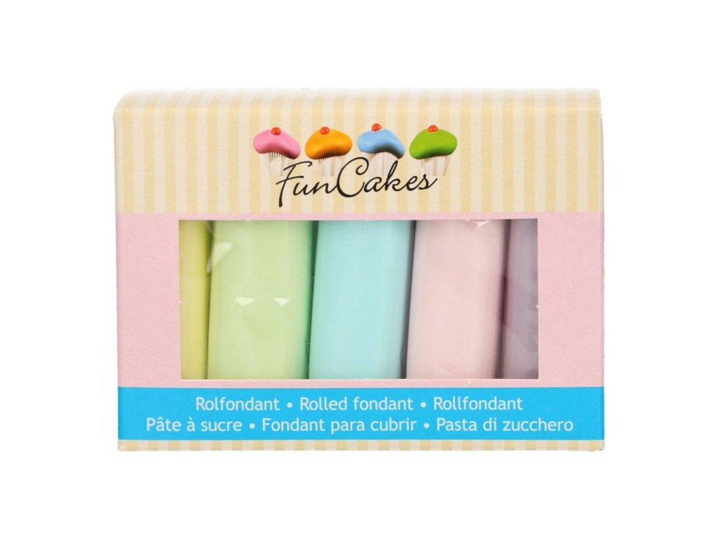 Sada pěti pastelově barevných rolovaných fondánů od FunCakes je ideální pro zdobení dortů a cupcaků. Tento fondán FunCakes využijete nejen na zakrytí, ale i na výrobu krásných dekorací. Sada obsahuje fialovou, růžovou, modrou, zelenou a žlutou v jemných pastelových tónech.