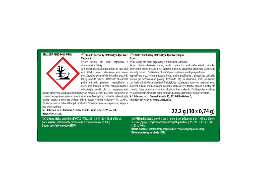 | Skladování: | Uchovávejte mimo přímé sluneční záření a skladujte při teplotách do 25 °C., skladujte mimo dosah dětí |