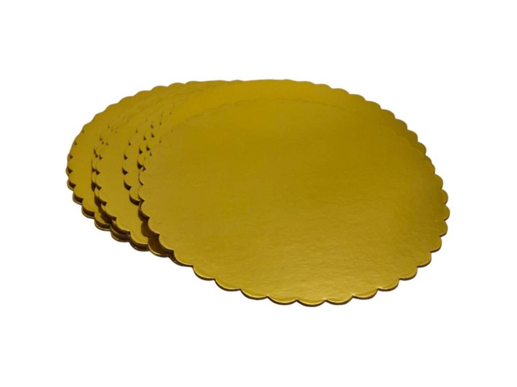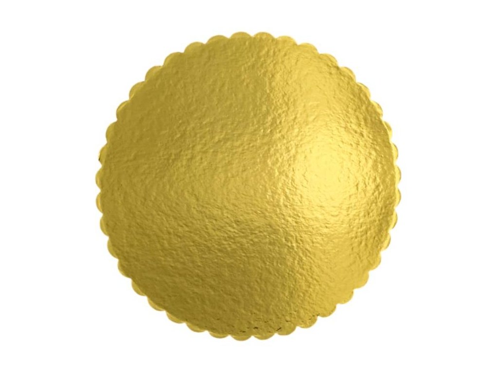 Velmi kvalitní nepřemastitelná, lepenková, kruhová podložka s vlnkový okrajem pod dorty a jiné cukrářské výrobky laminovaná zlatou fólií. Tloušťka: 2 mm Průměr: 20 cmDoplňkové parametry