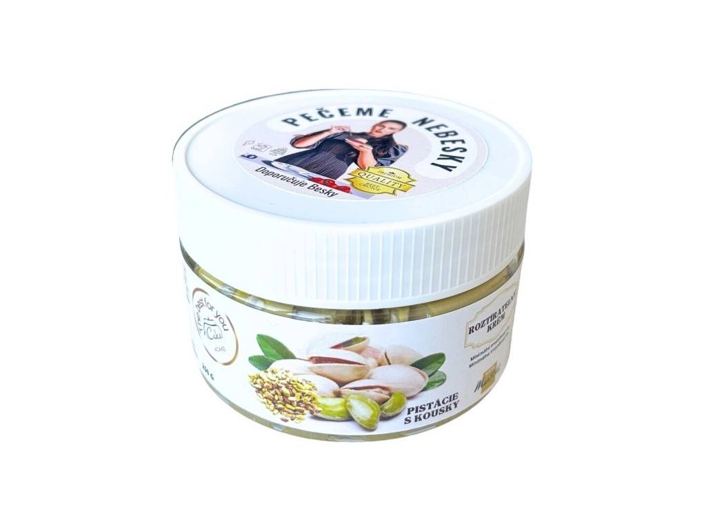 Složení: cukr, rostlinné oleje a tuky (slunečnicový, palmový), sekané pražené pistácie 15%, pistácie 12,5%, sušené odstředěné mléko, sušená syrovátka, laktóza, barviva antokyany, kurkumin, emulgátor lecitiny, přírodní aroma. Může obsahovat stopy ostatních skořápkových plodů. Nutriční hodnoty ve 100 g: energie 2391 kJ/574 kcal, tuky 38 g (z toho nasycené 9,5 g), sacharidy 47 g (z toho cukry 46 g), bílkoviny 9,7 g, sůl 0,28 gDoplňkové parametry