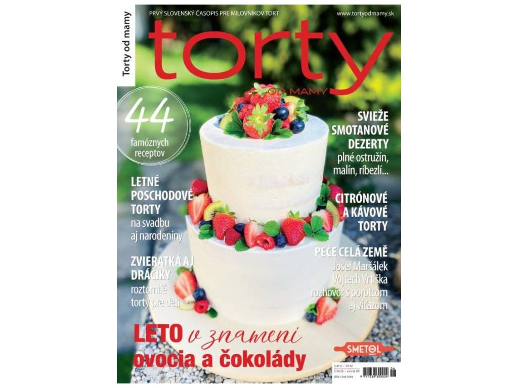 První slovenský časopis pro milovníky dortů. Pomůže Vám zorientovat se v cukrářských pomůckách, polotovarech a nejnovějších trendech, najdete v něm mnoho podrobných fotopostupů, inspirací ze světa, ale také recepty.Všechno na nádherných barevných fotografiích a kvalitním papíru.Vychází čtvrtletně.Doplňkové parametry