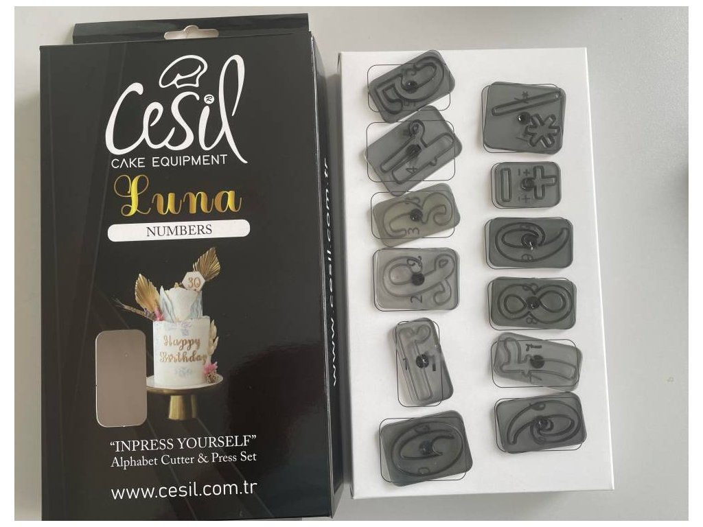 Díky této sadě otiskovačů a vykrajovátek jednoduše vytvoříte číslice na svém dortu. Rozměr písmen: 3,5 cmDoplňkové parametry