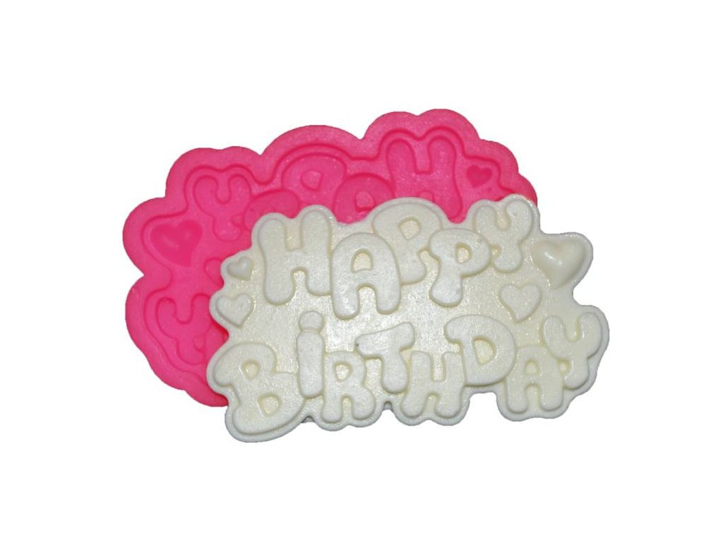 Cesil Silikonová forma Happy Birthday se srdíčky ▹