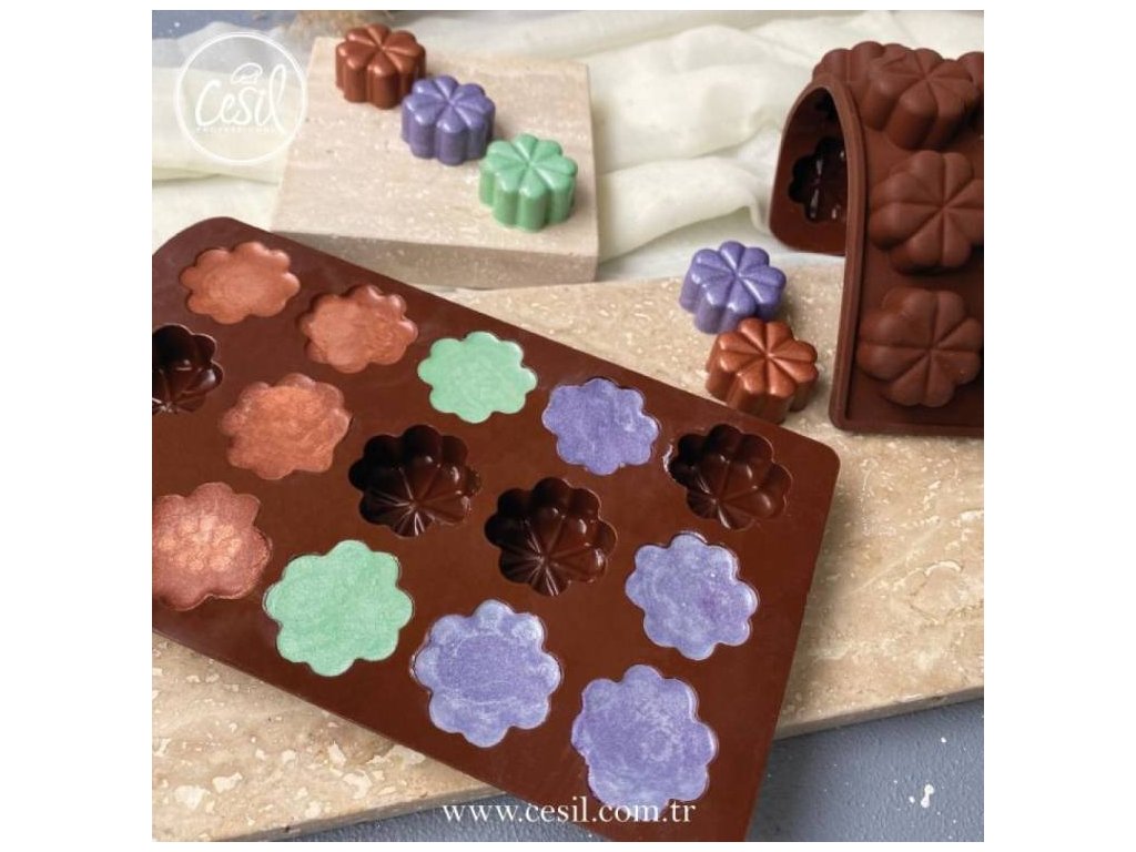 Kvalitní silikonová forma na výrobu čokoládových pralinek. Rozměr formy: cca 18,8 x 10,7 cm Rozměr jednoho čtyřlístku 3 cm Použití: Do formy nalijte rozpuštěnou čokoládu a nechte v lednici ztuhnout. Lze použít i na fondánovou hmotu, isomalt a želatinu.Doplňkové parametry