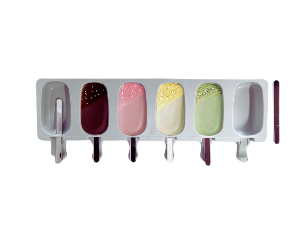 Tato forma je vhodná do trouby, mrazáku i myčky (-60°C až +230°C). Balení obsahuje i 6 akrylových špejlí. Rozměr jednoho nanuku: 9 x 5 x 2,3 cmDoplňkové parametry