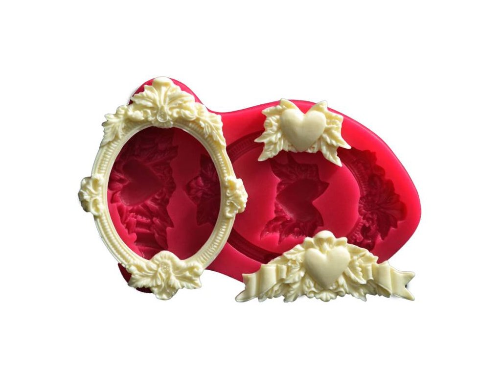 Cesil Silikonová forma Rámeček oválný a srdíčka ▹