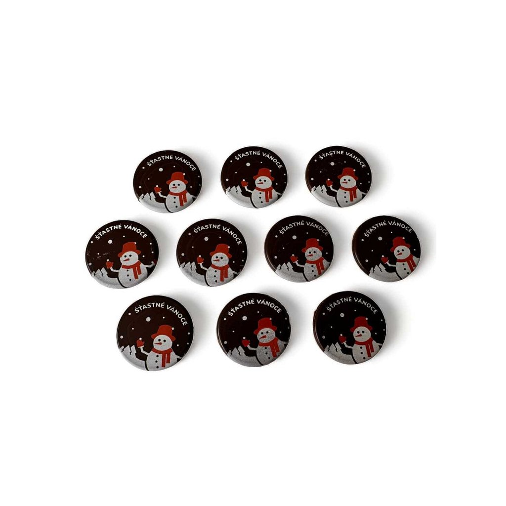 Tato jedinečná čokoládová dekorace je vyrobena z vysokoprocentní 62% hořké čokolády, která rozplývá se na jazyku a dodává každému kousku nezapomenutelnou chuť. S láskyplně vytvořeným designem sněhuláka a nápisem "Šťastné Vánoce" okamžitě získáte srdce všech, kdo mají tu čest ochutnat vaše vánoční pochoutky.