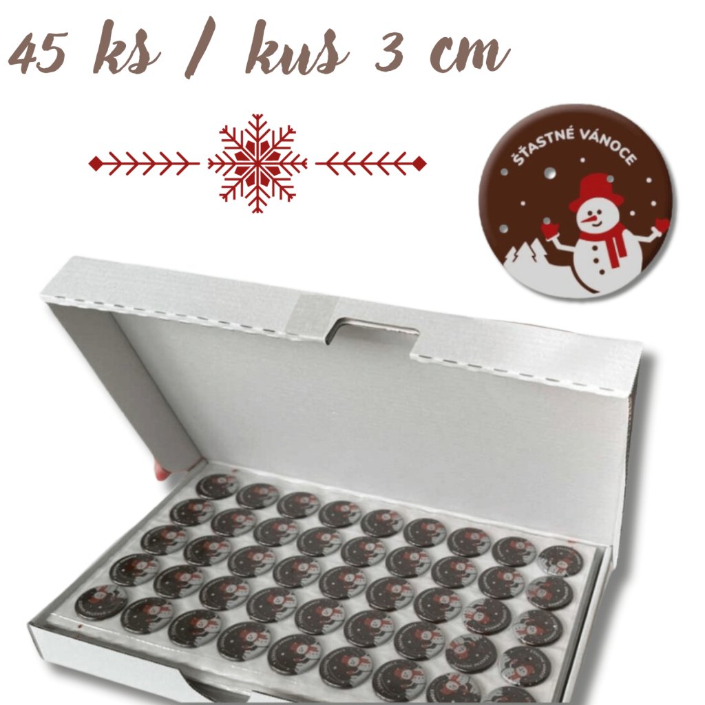 Čokoládová ozdoba na cukroví | hořká 45 ks - Šťastné Vánoce Motiv: vánoční dárky a nápis Šťastné Vánoce