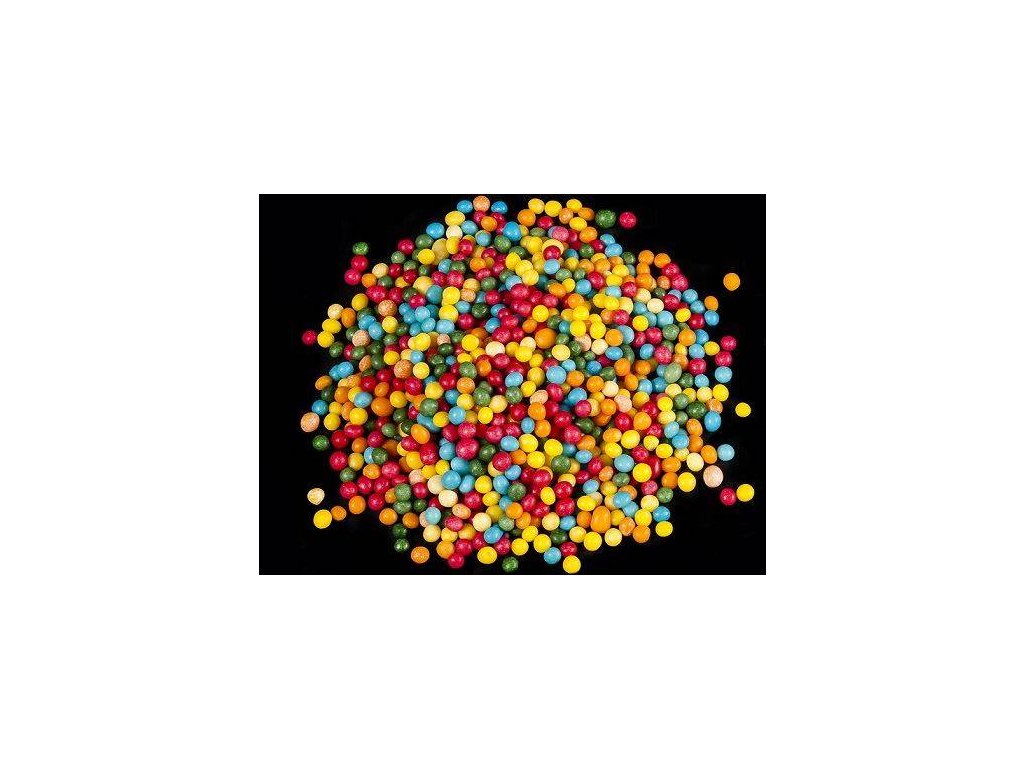 cukr, rýžová MOUKA, PŠENIČNÝ(Á) MOUKA, cukr, PŠENIČNÝ(Á) slad, sůl, kakaové máslo, barviva E120, E133, E160c, E141, E161b, lešticí látka E904