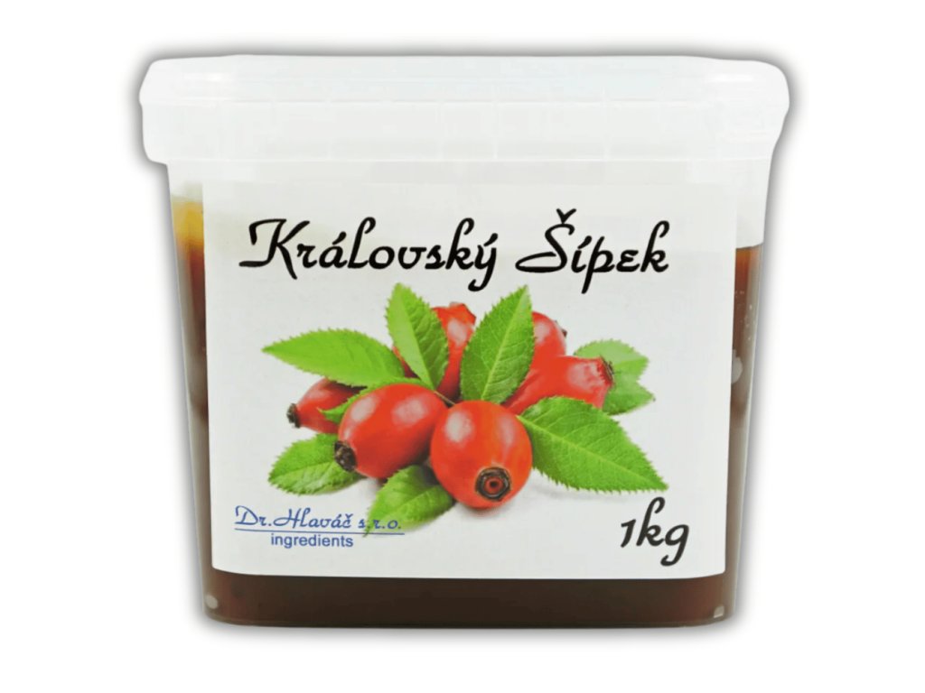 šípková dřeň 45%, glukózo-fruktózový sirup, cukr, voda, kukuřičný modifikovaný škrob, stabilizátor (guma gellan), kyselina (kyselina citrónová), konzervant (sorban draselný), aroma.