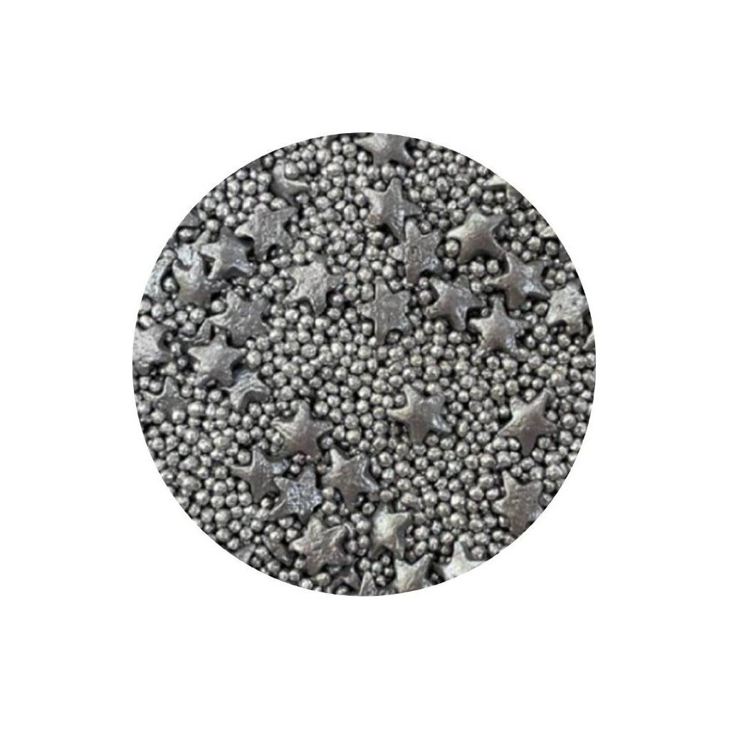 Cukrářské potřeby a suroviny pro sladké pečení.Produkt pro domácí cukráře: Cukrová zdobení metalická Stříbrné hvězdy mix 80g - I LOVE CAKES ,