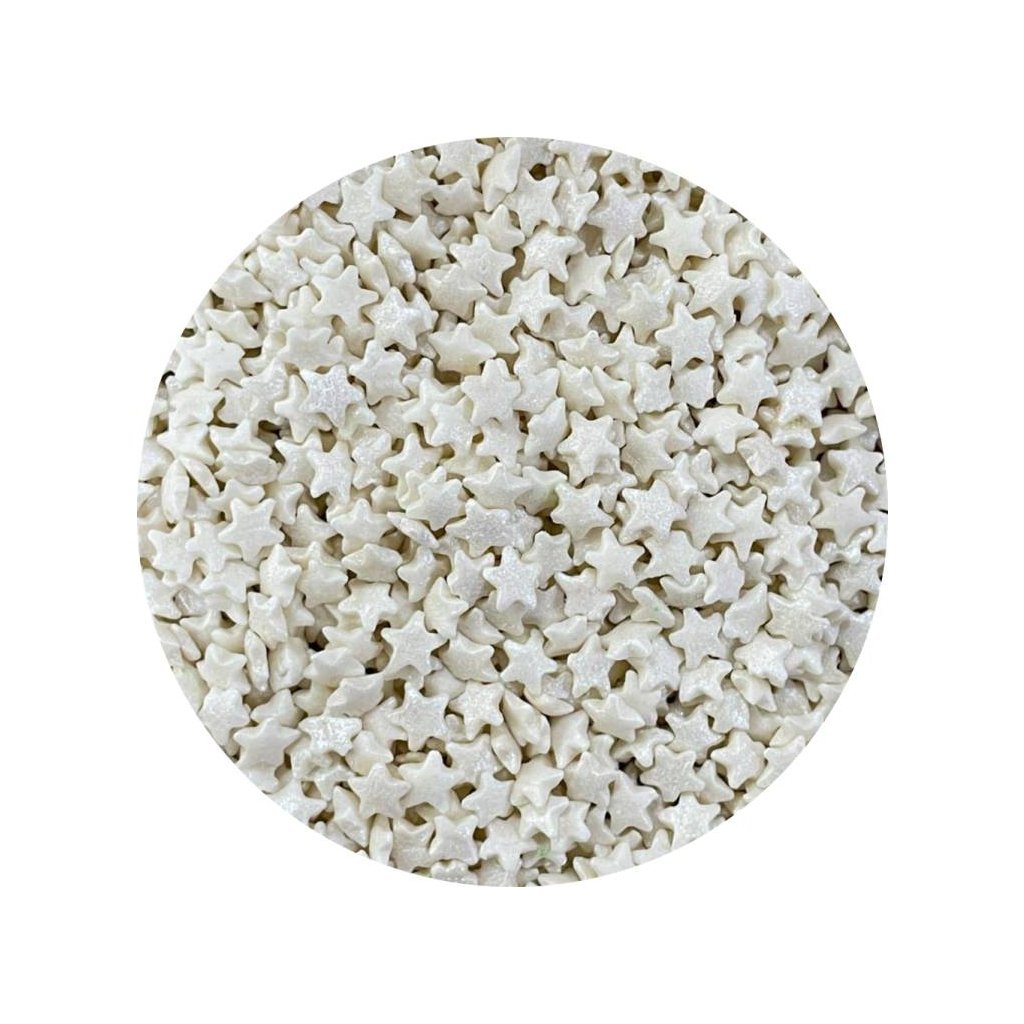 Cukrové hvězdičky bílé perleťové (50 g) ▹
