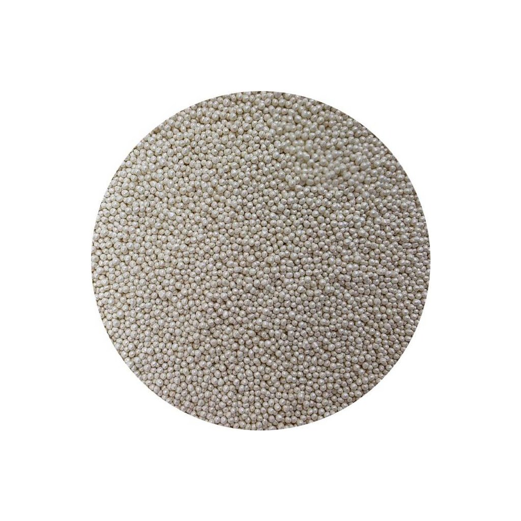 Cukrové perličky 2 mm bílé metalické. Balení 80 g.Doplňkové parametry