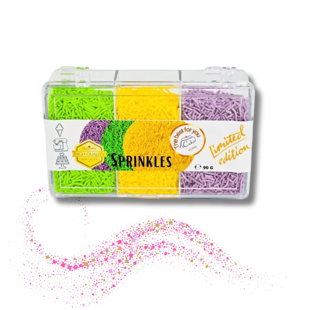 Báječný pro vaše dorty a pečení. Cukrové tyčinky fialové, zelené a žluté (90 g) je běžně skladem a jeho dodací lhůta je 2 až 3 pracovní dny.