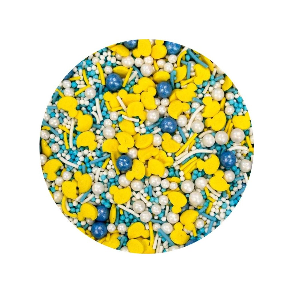 Produkt pro domácí cukráře: Cukrové zdobení bílé, žluté a modré Fluffy Waves 80 g