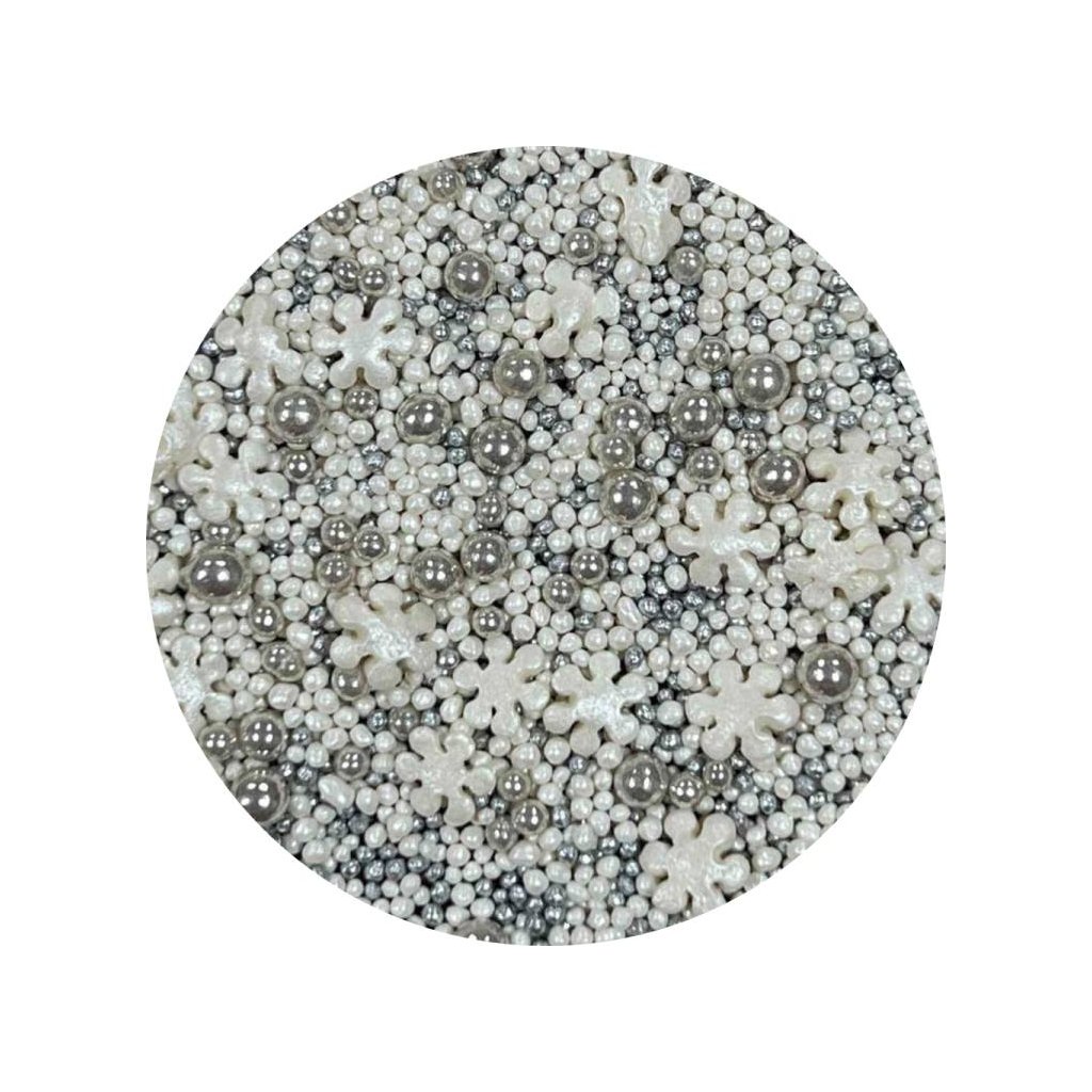 Cukrové zdobení bílé a stříbrné Snow White Silver (50 g) ▹