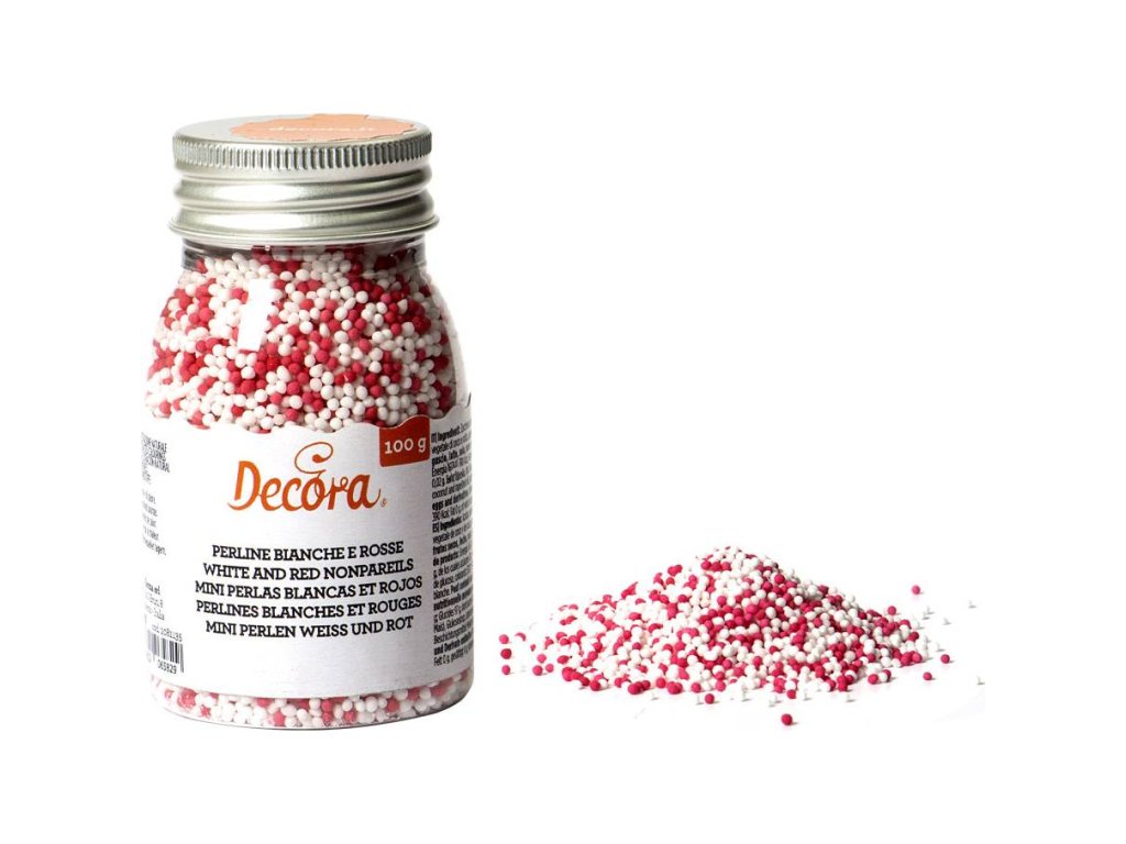 Cukrové zdobení mini perličky 1,5mm bílo červené 100g - Decora | Skvělé pro Váš domácí dort