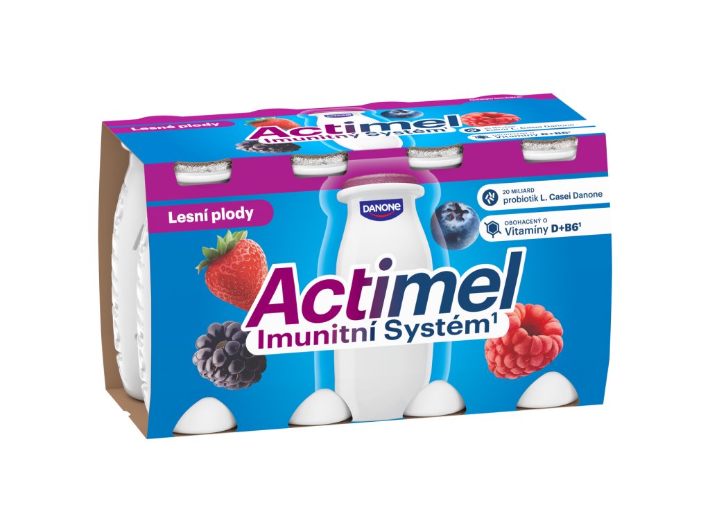 - Actimel jogurtový nápoj s L. casei Danone CNCM I-1518, s vitamíny B6 a D – s lesními plody