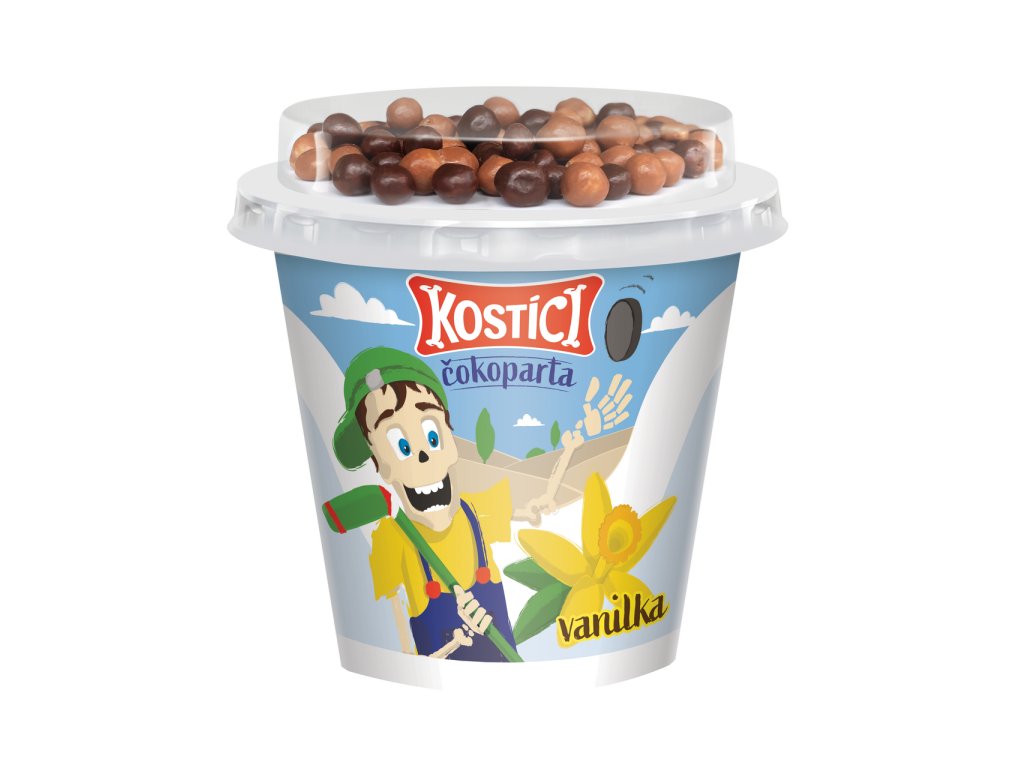 - Kostíci Vanilkový jogurt a extrudované kuličky v mléčné a hořké čokoládě 6,5 %