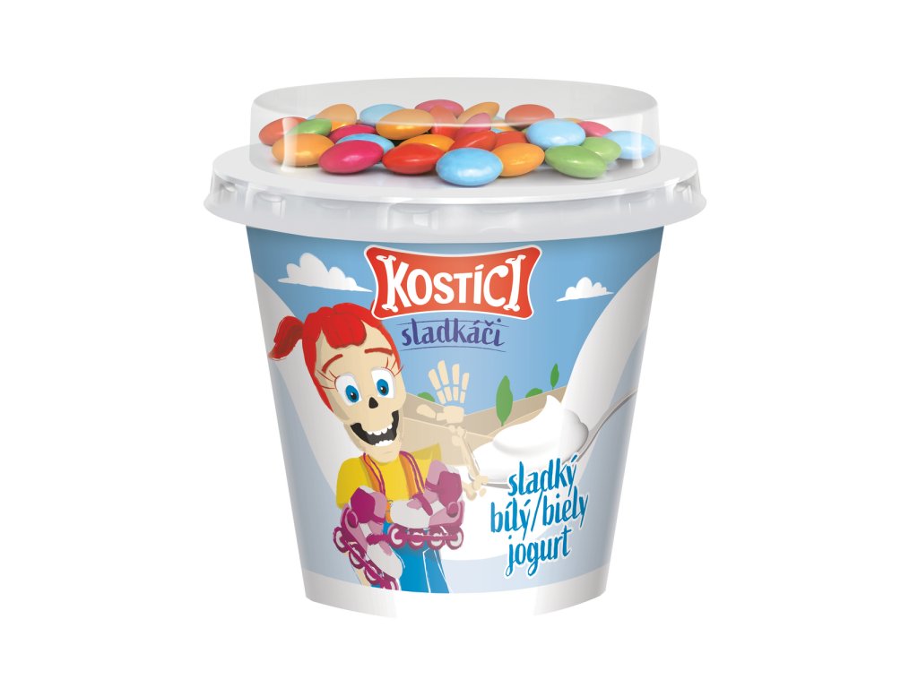 - Kostíci slazený bílý jogurt a dražé z mléčné čokolády 8,3 %
