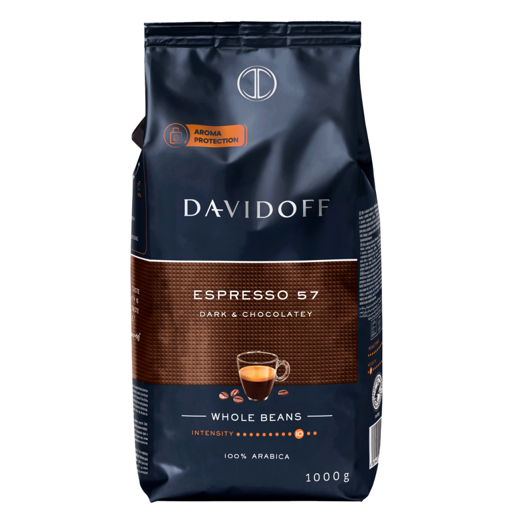 Oblíbený produkt z kategorie: . DAVIDOFF Café Espresso 57 Dark&Chocolate Káva zrnková 100% arabica 1 kg máme běžně skladem.